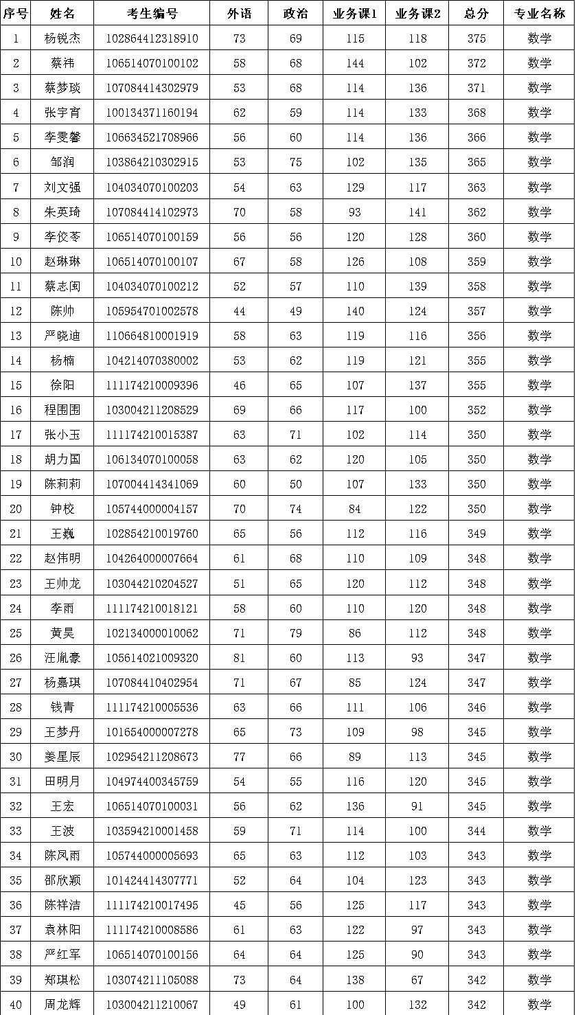 根据《51吃瓜网 2024年硕士研究生招生复试录取工作实施细则》中数学调剂的基本要求,及复试比例1:1.5的差额,按照初试总分由高到低的原则,复试面试名单如下: