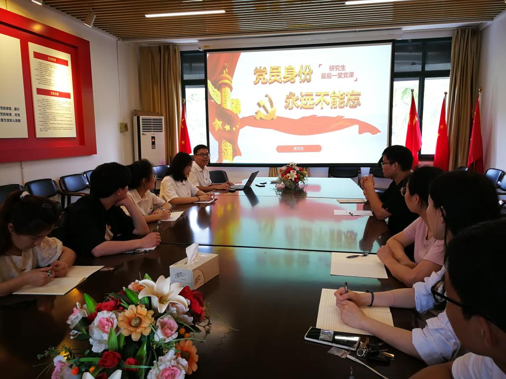6月22日,黄奕筱以《党员身份 永远不能忘》为题,提醒毕业生党员们要时刻牢记党员身份,带头学习提高、带头践行宗旨、带头爱岗敬业、带头遵纪守法、带头弘扬正气,在政治上讲忠诚、在组织上讲服从、在行动上讲纪律,在新的人生路上谱写新的篇章。