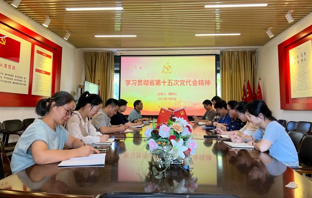 院长陶祥兴为行政党支部上“学习贯彻省第十五次党代会精神”专题党课。党课由行政党支部书记陈肇亮主持。